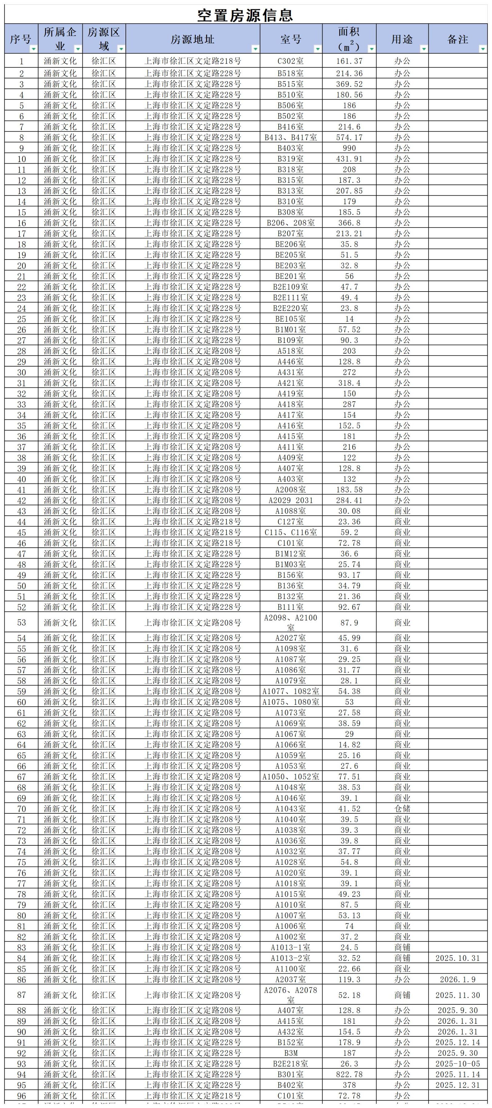 上海服装集团2025年10月空置及11月-26年1月到期房源信息公开