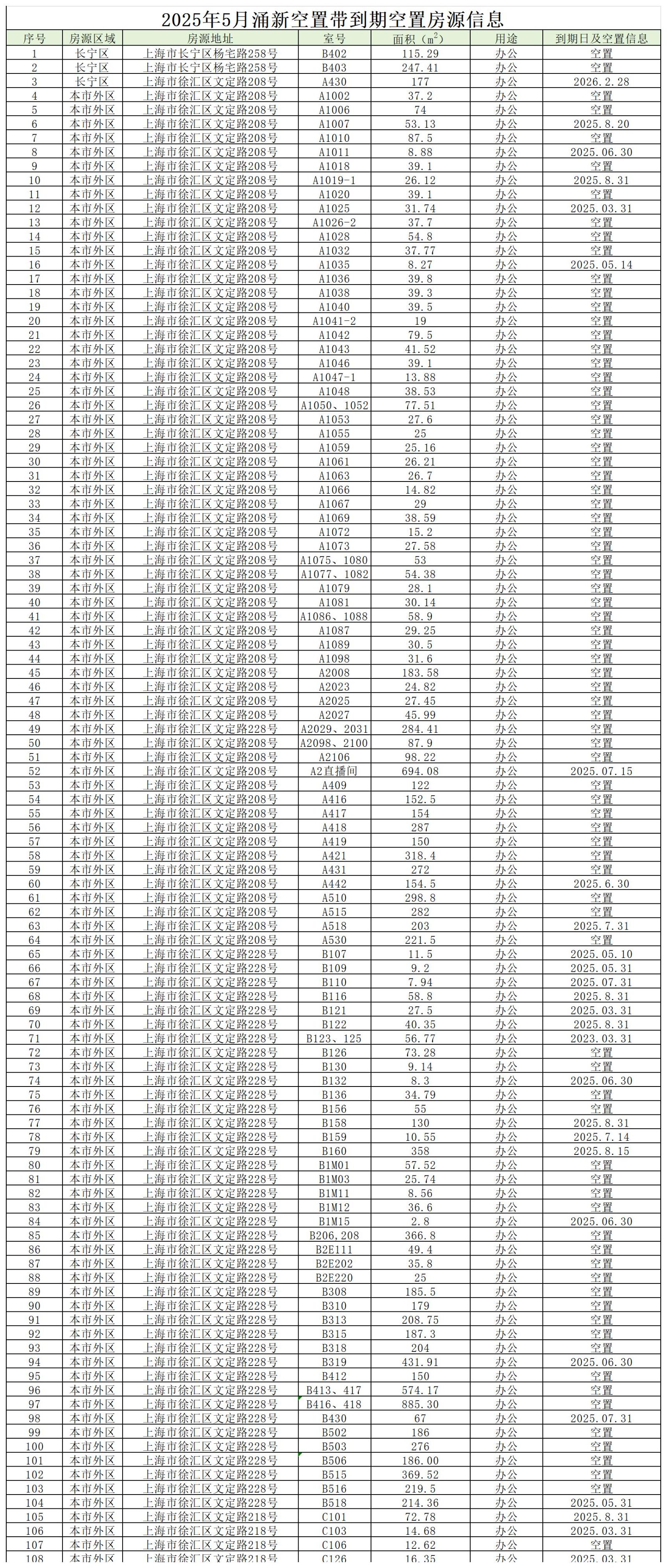 2025年5月涌新空置带到期空置房源信息